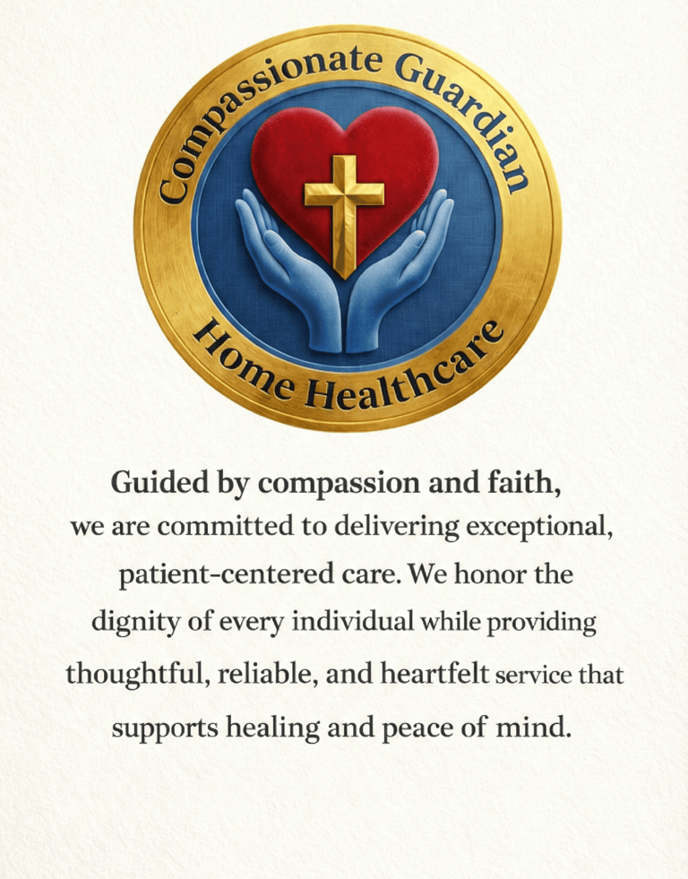 At Compassionate Guardian Home Healthcare, we provide skilled nursing and therapy services tailored to your unique needs, all delivered with kindness, respect and with faith.